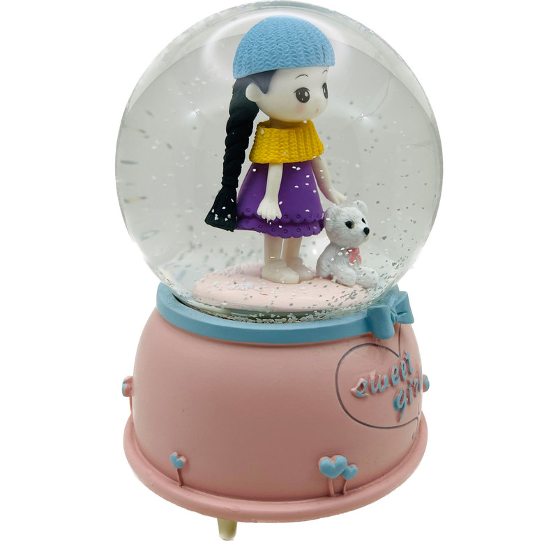 گوی موزیکال مدل پمپی Sweet girl طرح دختر دوست داشتنی و خرس کوچولو کد PD4054